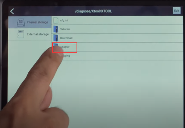 How to search for EEPROM file saved on XTOOL X100 PAD3? Back to X100 PAD3 main menu Select Report-> File Management-> Internal storage-> Adapter