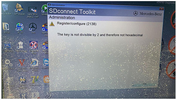 Customer problem: When I run 2020.03 MB SD C4 Plus software, an error message pops up with the words “Register/Configure (2138) The key is not divisible by 2 and therefore not hexadecimal”.