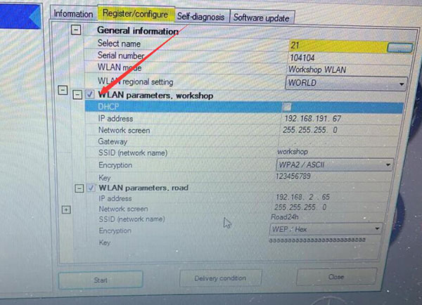 Cardiagtool.co.uk engineer replied: 1.Please remove the tick of WLAN parameters, workshop 2.Change the key number to 26 lowercase letters: a