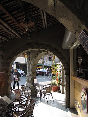 旗山老街的"石拱圈亭仔腳".亭仔腳是騎樓人行道的台語.(圖片摘自維基百科)