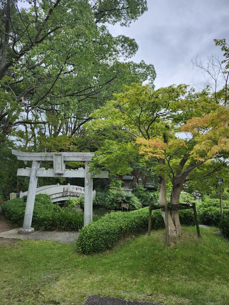 左側有庭園.有弁財天石造鳥居.