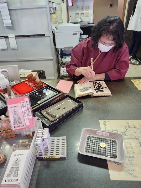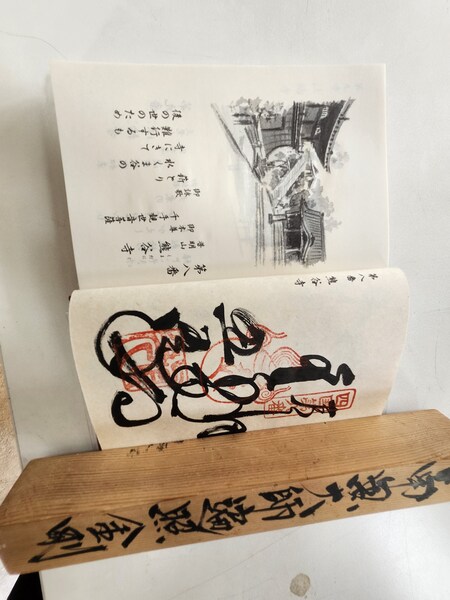 揮毫蓋印.五百日幣納經費奉上.御影自取一張.有的寺院.御影會拿給你.