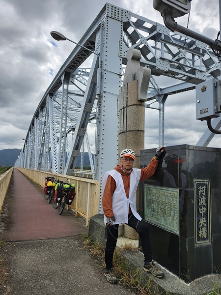 第1番到第10番都在吉野川北邊.吉野川是四國第一大河川.全長236公里.參拜完第10番切幡寺後.要跨越吉野川到南邊第11番藤井寺.有兩條路可騎.一是川島橋的古老沉下橋.另一是阿波中央橋.