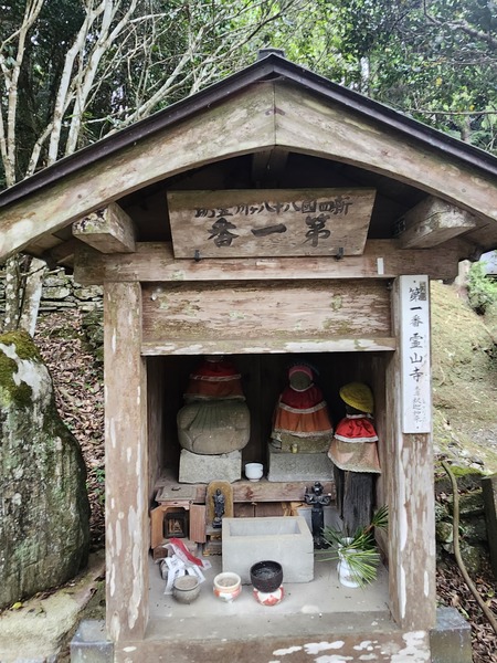 古遍路道入口.更設有四國遍路88寺院的代替性佛龕.這是第一番佛龕.