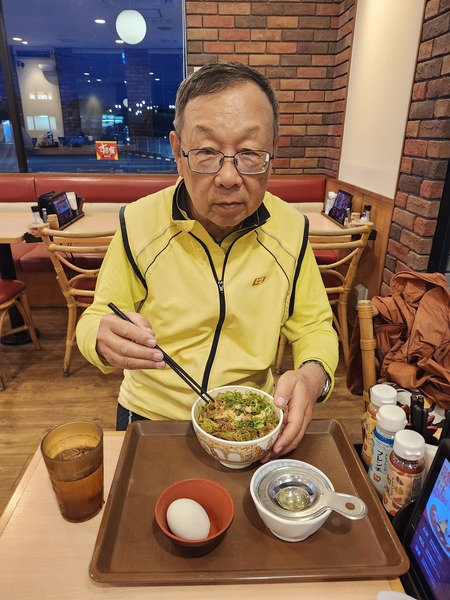民宿不供餐.我們只能騎約2公里到鴨島町.SUKIYA吃很棒的牛丼.