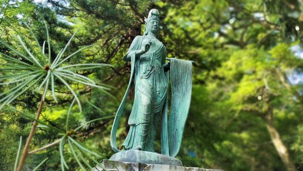 本堂與大師堂之間.向西而立.以切幡織女形象的青銅觀音像.