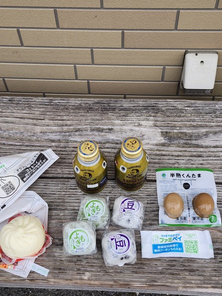 昨晚善心店家送包子.所以.早餐也買包子吃.佐熱咖啡.外加糖心蛋.豆大福當點心.