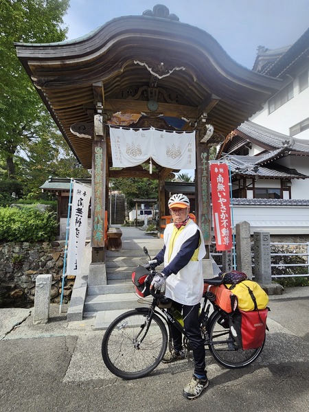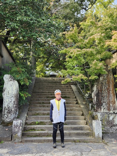 12號縣道的岩屋寺入口.要往下一番寺院.一般開車或走路.會循昨天來時路.往回走到久萬高原町街區.但.這條路往回走.都是爬坡.會很累.看前輩網書指引.下坡往美川.轉33號國道.到昨天經過的[落合].轉昨天騎過的33國道到久萬高原町街區.這樣雖多騎10多公里.但.幾乎都是下坡與平坡.輕鬆得很.