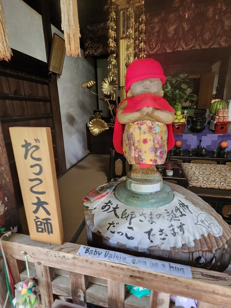 有趣的是.大師堂內.這尊小孩形象的空海大師.供參拜者抱起結緣.