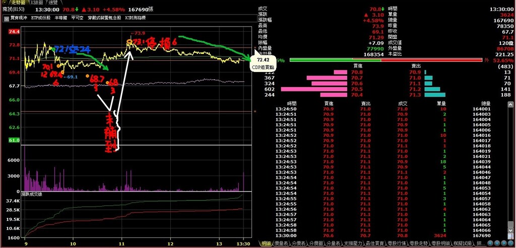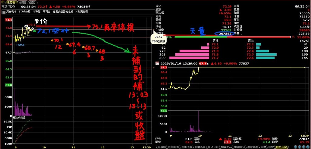 本文章的圖檔,「到舊版」瀏覽,會較清晰,若用手機看,請點擊最底下的「傳統版」(傳統版才能放大縮小)。 我教當沖,不只教「知其然」,還要「知其所以然」,收盤後均會予以詳解。 現招收一名當沖學員(限自有活用現金,至少200萬),免學費,須08:30~13:30能看盤,13:25~13:30這五分鐘能下單(結案不隔夜)。 如果你上過套利課程,會有我的Line,直接報名。 如果沒上過套利課程,請至我部落格的訪客簿 http://classic-blog.udn.com/op1681/guestbook 以悄悄話留下姓名、手機、Line的ID,我會主動聯繫。