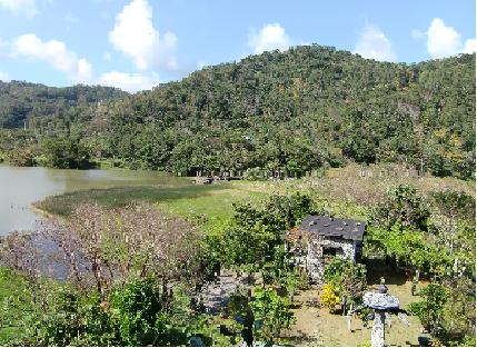 來到石門古戰場,肅穆蕭瑟的壯闊奇景令人讚嘆。相傳這是過去歷史要事牡丹社事件的事發地點。一段因語言不通而發展的族群紛爭,卻被有心的統裁者利用,演變為一場名為「復仇」的殘忍殺戮。如此的時空背景,即便經過百年,國家光復後,此情此景早已事過境遷、物換星移,卻依稀可見當時的遺跡殘骸。於是一方面著迷於「石門」地如其名般陡峭險峻的美麗風景之外,也能感受到一股淡淡的悲愴淒美。 循線而上的哭泣湖,乍聽名字以為也有一段美麗的故事,而後才得知其實是排灣族語的諧音而來。「ㄍㄨ ㄐㄧ」,意為「水流匯集處」。一到湖畔,迎面而來的是滿山滿谷的野薑花園。由於現在尚未到真正的花季,想必待至六、七月後,花會開得更繁盛更美麗吧!