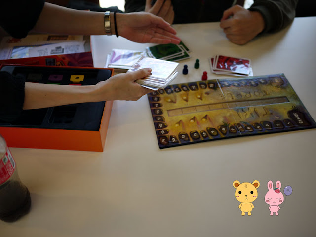 遊戲開始前,每位玩家選擇一個自己的顏色,會發配到相對應的行動卡,這些行動卡的功能分別為:*指定任一提基向上移動一格! *指定任一提基向上移動二格! *指定任一提基向上移動三格! *指定任一提基掉到最後一格! *殺死最底下的提基!(有夠邪惡的,要想辦法讓自己不要被殺掉!又要殺死別人) 分數怎麼得? 遊戲開始時,會抽出一張任意三顏色的分數卡,如果您的提基對應到場面的提基顏色時,就能獲得分數,分數計算如下: *分數卡的第一個顏色=檯面上提基的第一個顏色=9分 *分數卡的第二個顏色=檯面上提基的第二個顏色=5分 *分數卡的第三個顏色=檯面上提基的第三個顏色=2分 遊戲如何結束呢? *當行動卡全打完的情況,直接結束!(這點有點多餘,根本打不完就被殺光了!) *當場面剩下三個提基就結束這回合 ●如果有人先到35分,遊戲就直接結束。 解決行動卡後,我們就要把提基都放到部落之中,進行廝殺動作,提基的位置是有順序的,要按背後的圖案分作3組(貝殼、海星、魚骨)排,之後再依順時針進行遊戲。 這款遊戲給我的感覺是,真的是要比心機重的,因為可能這一場,你把你的顏色放到正確的位置後,下一輪就會被其他人移到最底,甚至在被下下位玩家殺害掉,這就代表你這一場將拿不到任何分數,這時候就會有一些人專門搞破壞! 為什麼心機重呢?因為有些分數高的人,例如狗趴趴 +Pubby Huang ,就會故意移動不是自己的顏色,讓別人以為他手上對應的顏色這個錯誤的,進而借由別人手,砍掉對自己沒用的提基,這招真的超級奸詐的!以上是熊對於這款遊戲的感想。 店名:翻桌 地址:新北市淡水區北新路184巷120號(淡江大學裡面) 電話:0963184120