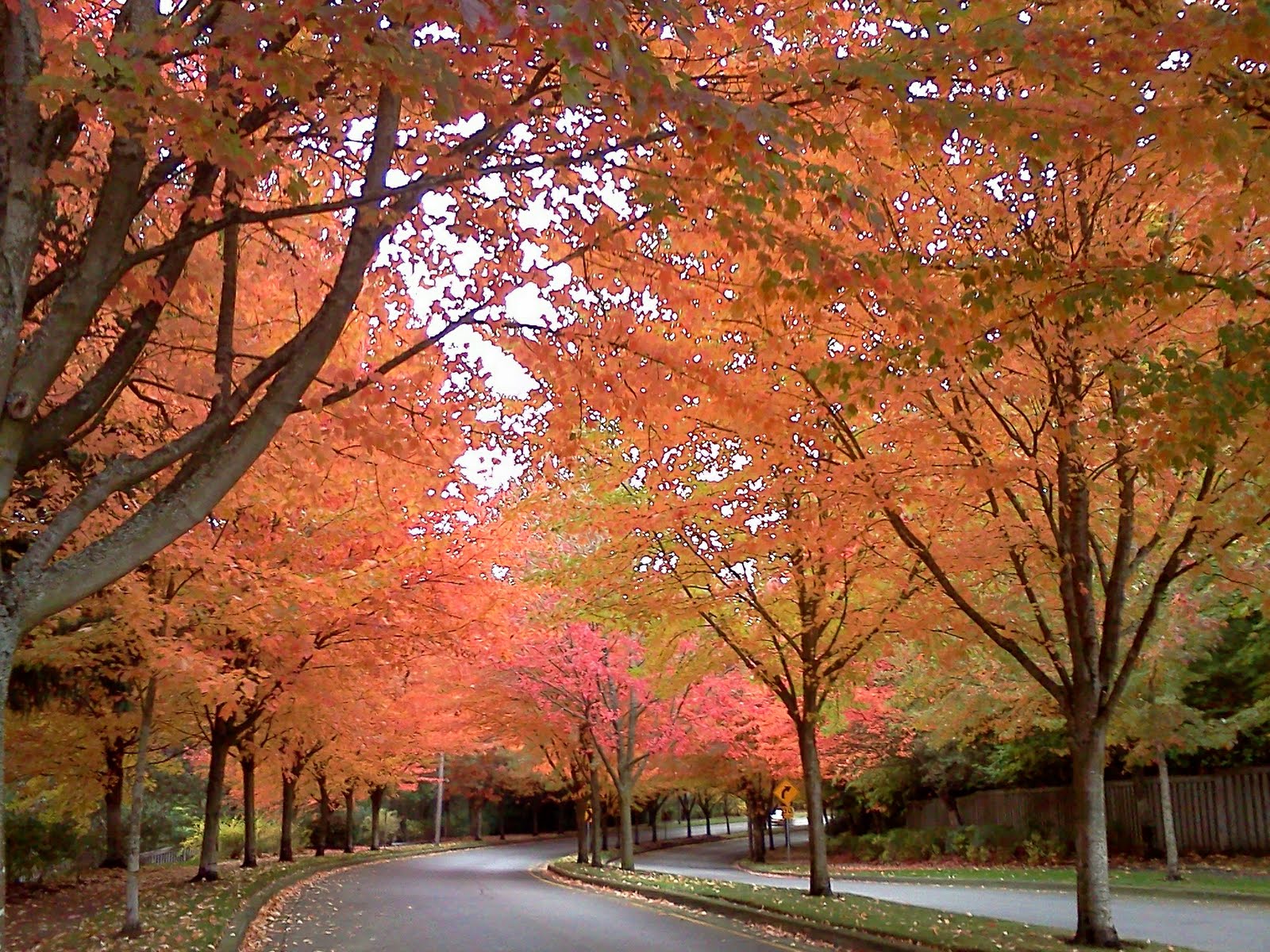 | 記得小時候住在學校的教職員工宿舍,宿舍區往外通路的大門口有一棵不知道什麼樹,聽說是楓樹,到了秋天葉子會變色,我們每到季節變換的時候都會特別注意那棵樹,好像真是會變紅,但是孩提時模糊的印象僅只於此。到美國來之後,才真的明白四季的變換是怎麼一回事,春夏秋冬各有不同,我最欣賞的是秋天的色彩。來到奧勒岡將近二十年,今年是到目前為止我覺得最美的一年。 奧勒岡多雨,往年這個時候早已是滴滴溚溚地下個不停了,即使有多美的葉子,但總是承受不住風雨的摧殘,早早地掉得一地都是。今年夏季雖然來得又晚又短,秋天卻是與以往不同,雨水較記憶中少多了,也是因為如此,我們才有機會看到一樹樹的色彩繽紛,黃的紅的,熱熱鬧鬧地在樹上慶祝這美麗的季節。 心裏一直記得要出去拍照,但是太忙實在抽不出時間,只好用手機隨手記下這鮮明亮麗的一個秋天。 延伸閲讀,去年拍的銀杏樹。