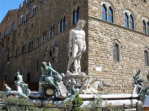 這是巴托洛米奧·阿曼納蒂(1563–1565)及其助手(例如詹波隆那)的作品。 1565年在弗朗切斯科一世·德·美第奇(科西莫之子)和奧地利的約翰娜舉行婚禮之際下令修建。最初任務指派給了巴托洛米奧·阿曼納蒂,他設計了模型,但是在開始雕刻之前就去世了。