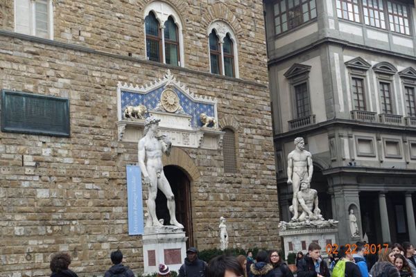 舊宮前的雕像 左邊:大衛像 右邊:海格力斯和凱克斯