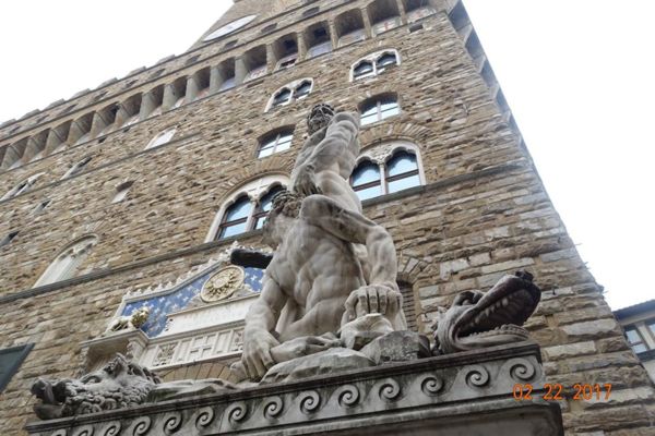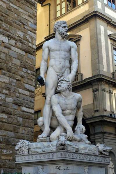 巴齊奧•邦迪奈利1533年完成的雕塑《海格力斯和凱克斯(Hercules and Cacus)》。 這是希臘神話中的兩個人物,海格力斯是大力神,凱克斯則是一個會噴火的盜賊。 這張是網圖