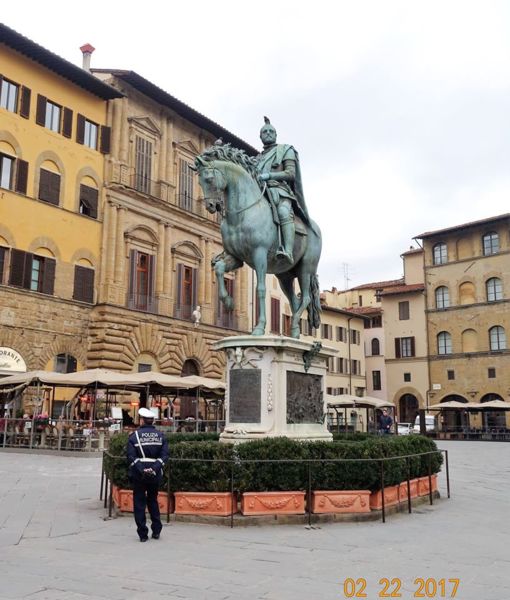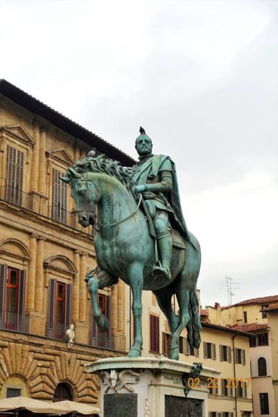 科西莫一世Cosimo I de Medici騎馬雕像 這座雕像是由斐迪南一世·德·梅迪奇為紀念他的父親--第一任托斯卡納大公科西莫一世而建。