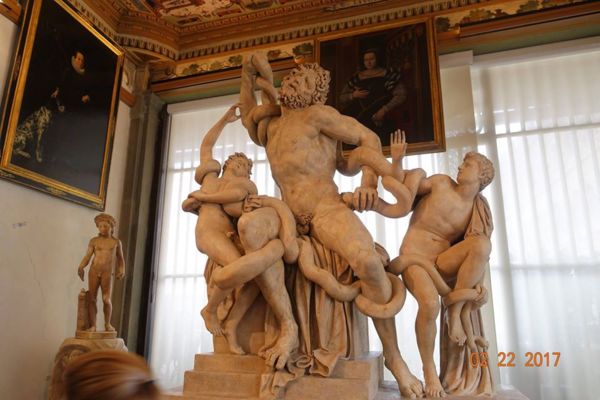 著名的「拉奧孔與兒子們」雕塑 現存放在烏菲茲美術館的,其實已經是後人仿製的雕塑了;原件目前放在梵蒂岡博物館中!