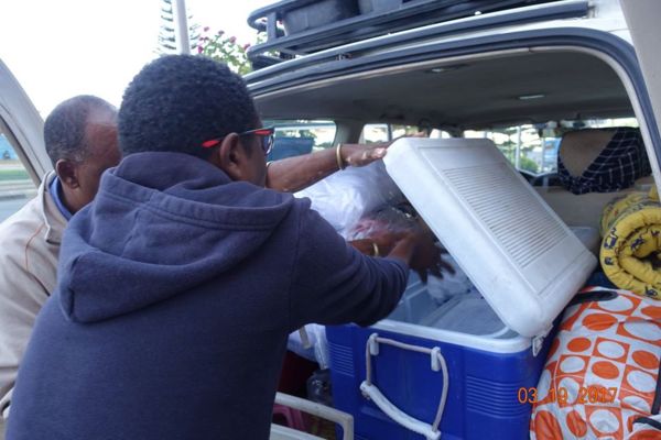車上除了我們需要的一些食材(沿途可沒餐廳!) 還有冰塊(降溫用)、水及汽油(沿途也沒加油站)
