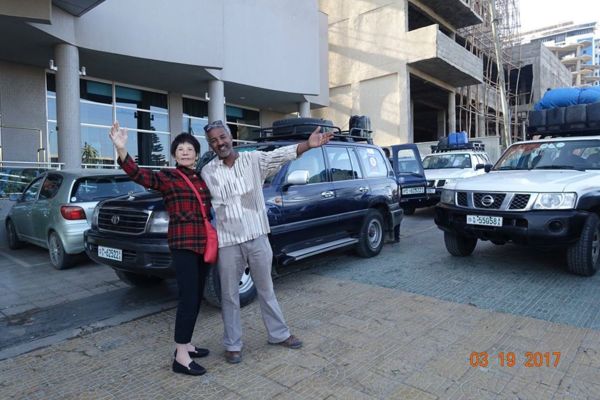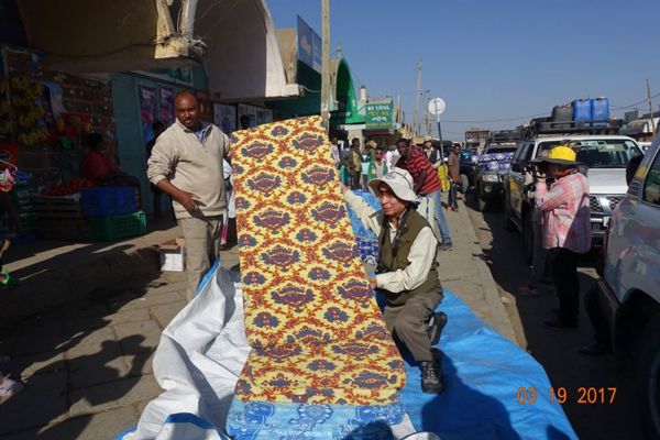 為了在火山口露營而採買新的床墊(怕地太硬,我們每人都睡兩床床墊!)左邊是我們的司機LULU!—