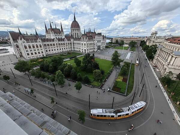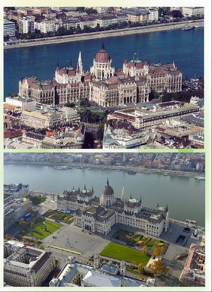 國會大廈鳥瞰圖(上下皆網圖) *匈牙利國會大廈(Országház),是匈牙利非常著名的地標,完工於西元1904年,由建築師「什泰因泰爾·伊姆雷」設計,並於2002年成為世界遺產。 下--國會大廈前的空地就是科蘇特廣場(Kossuth Lajos tér),也叫〝自由廣場〞