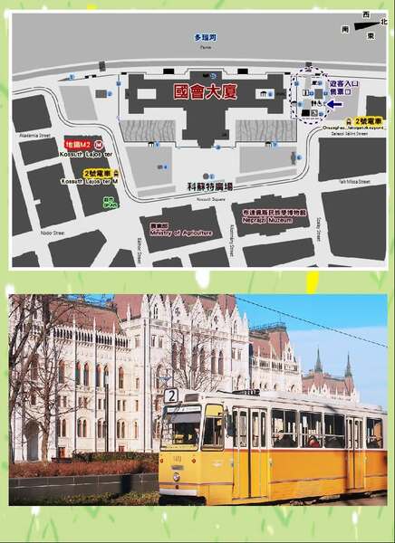 上--2號電車的行進路線(可藉此圖搞清楚方位) 下--濃濃復古風的2號電車 *上下皆網圖