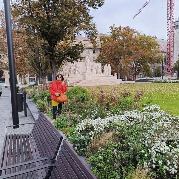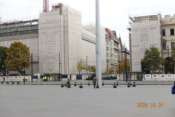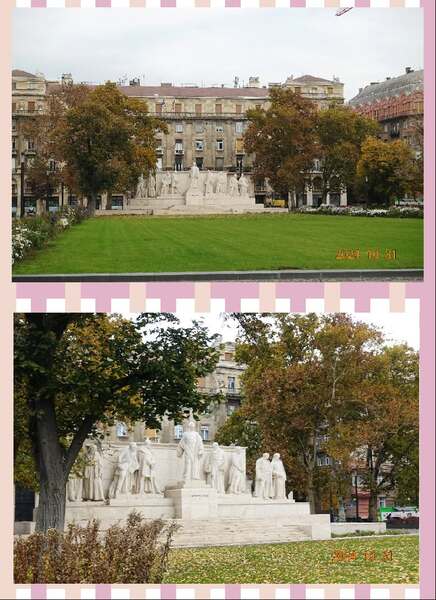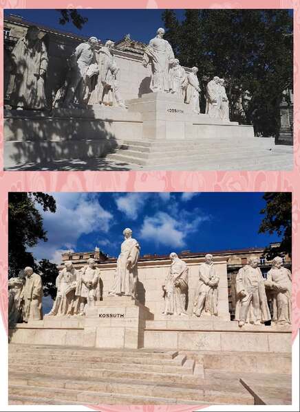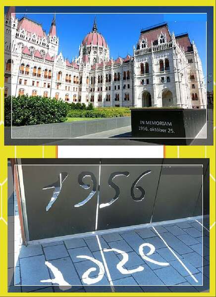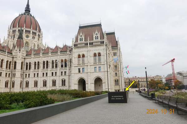 前方是1956年匈牙利革命紀念碑 *1956年匈牙利革命期間,科蘇特廣場是革命的中心地帶,10月25日廣場發生了屠殺事件,議會大廈對面的農業部大樓上有機槍向廣場上的人群掃射,造成多人死傷。因此國會大廈前才有紀念1956年匈牙利革命的紀念碑。