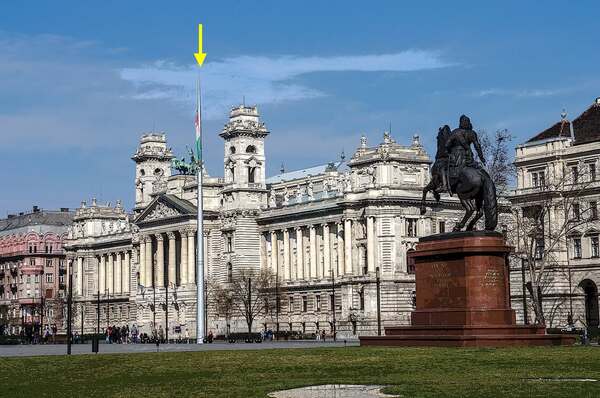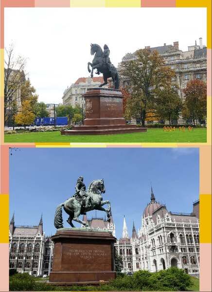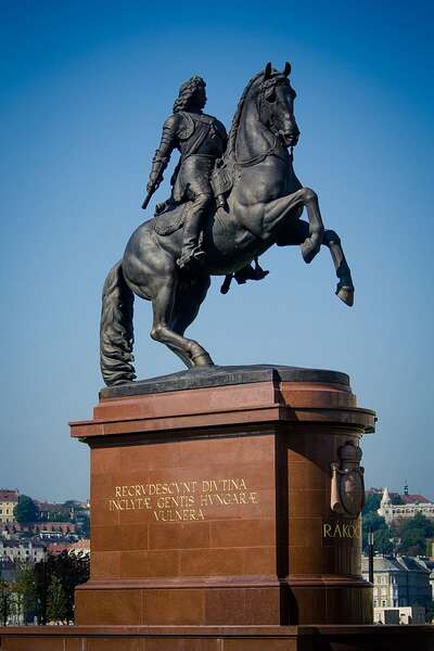 費倫茨·拉科齊的騎馬雕像位在科蘇特廣場上,前方是升旗桿;左前的雄偉建築是匈牙利民族博物館 *網圖