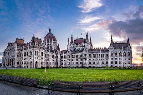 國會大廈正門(東面) *國會大廈為一棟對稱的哥德式建築,匈牙利的國會在二次大戰前是採參議院與眾議院兩院制,因此大廈兩邊皆有一間規模相當的議會廳,而戰後匈牙利議會才改成一院制,所以另外一間議會廳就開放給遊客參觀。 *網圖
