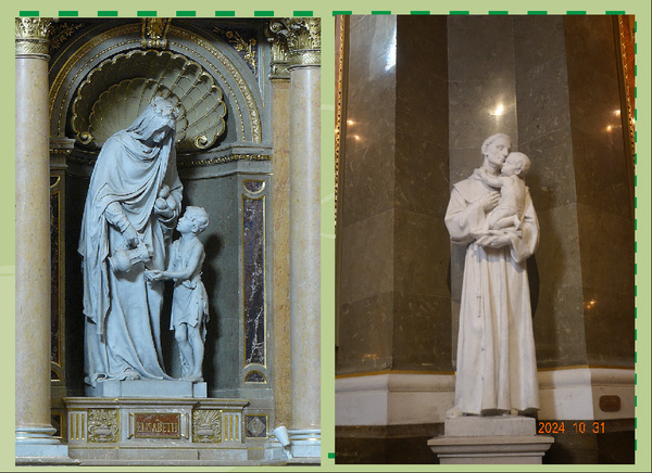 左--聖伊麗莎白(Károly Senyey)//網圖 右--聖安多尼(St. Anthony of Padua)抱著小耶穌的雕像。 ※聖安多尼是天主教聖人,以其強大的講道能力、對聖經的精通以及對窮人和病人的奉獻而聞名! ※他被尊為失物、窮人、旅行者、水手和漁民的主保聖人。