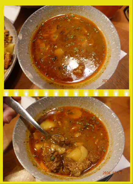匈牙利牛肉湯,其實跟羅宋湯還是有點差別的!(裡面那個不是馬鈴薯,而是面疙瘩)--2190福林