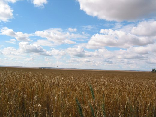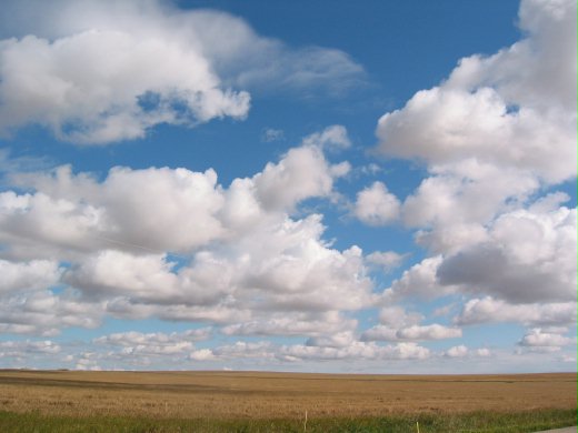 秋天雖短暫,但卻是令人喜悅的收穫季節。 前文發表了自家的香甜蘋果,這幾天經採收後,稱重達十多公斤。除了留一些自己享用外,也分贈給了些親朋好友。 咱所住的卡加利市是位於南亞伯達省的大草原上,附近有大片大片的小麥田園。前幾天趁前往恐龍谷之際,特別拍了些照片。那天運氣特別好,正巧是大朵朵的白雲飄浮在蔚藍的天空上。在這麼美的藍天白雲襯托下,使得一望無際的麥田,帶來了豐收的喜樂。