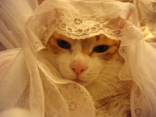 話說某人敗了很大的家之後,為了搏回成本,善盡美好事物的不切實際之職責,除了自己睡在Bali夢之外,還要兩隻貓咪也一起加入這個「阿 Q表演團」行列~ 於是,我家的小咪先上場了~~ 走的是標榜聖潔無暇的純愛路線~~ 如果有煞到的貓男貓女,請打以下徵婚電話: 0800-123××× 請洽嘴邊一顆痣,頭上三朵花的媒人婆就素偶啦~ (圖三:拍婚紗粉累的,於是新娘子就睡著了、、、Zzzzzzzz) ★加註,此貓跟河莉秀是姊妹! |