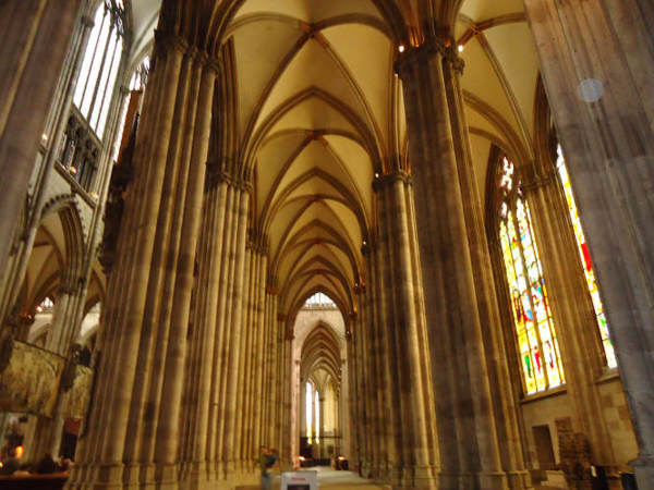 德國科隆大教堂被認為完美地結合了所有中世紀哥德式建築和裝飾元素 哥德式建築的特色包括尖形拱門、肋狀拱頂與飛拱。 哥德式建築最常見於歐洲許多城堡、宮殿、大會堂、會館、大學,