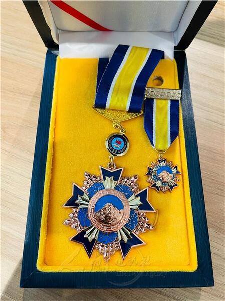僑務委員會副委員長徐佳青(右三)與駐美代表處鄭榮俊公使(左三)及白越珠(右一)、陳桂鈴(右二)、李治瑞(左二)及王福權(左一)玉山僑務專業獎章受獎者合影,表彰他們數十餘年來在華府地區擔任僑務志工的努力與貢獻。