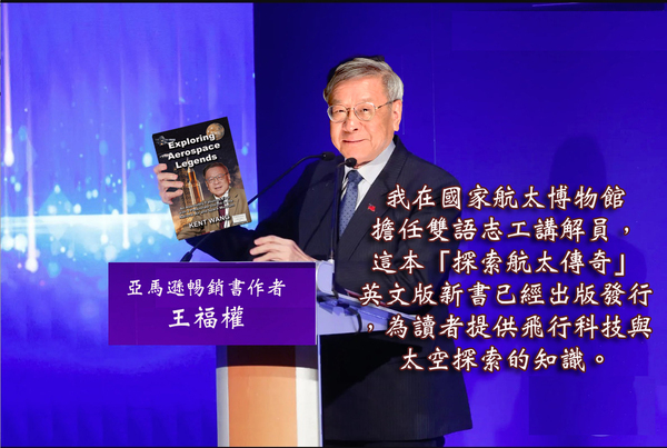 王福權從事航太科技相關工作逾30年,他在華府國家航太博物館擔任志工講解員已經超過30年,他的這本新書,講述他從事志願者工作的見聞以及對探索太空的熱誠。王福權表示,他的書將給讀者提供驚喜的航太體驗,帶讀者踏上太空旅程,探討航太傳奇,他希望讀者會喜歡這本新書,跟隨他的導覽解說開啟一段絕妙之旅。這本書已在亞馬遜出版並已經上架銷售。