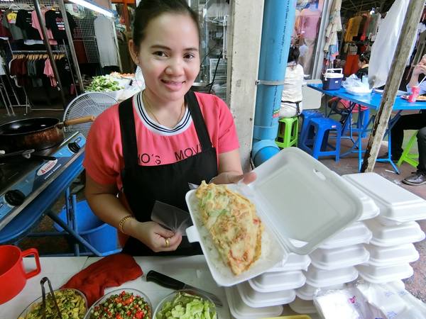歐飛在曼谷短暫住了2個月 (2017/11月~12月),剛好有台灣朋友來曼谷玩,一來就問我吃他們路邊攤有沒有拉肚子。其實這很難說,每個人的體質不同,我的腸胃適應力算好。來曼谷玩的朋友有沒有看過市場現做歐姆蛋?