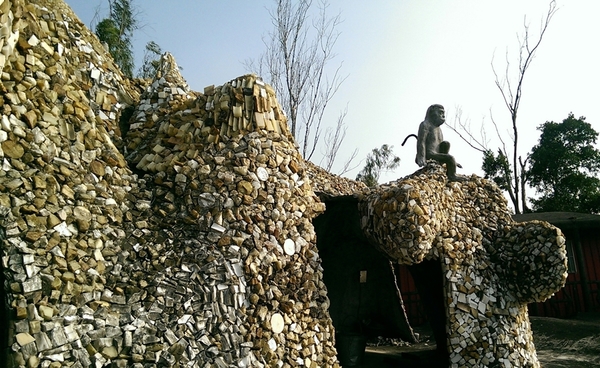 兩旁的石頭擺放的很美。倒是忘了問廟方為何屋頂上會有大群猴子當裝飾。