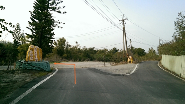 進來後再看到這2顆黃色石頭左轉進去看到黃色屋子就是了,一直開進去就到停車場。