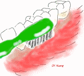 正確的刷牙方法應是將牙刷刷毛以45度角,朝向牙肉輕輕地貼在牙齒與牙肉的接縫上,每兩顆牙做15次的短距離來回橫刷後, 再換下兩顆