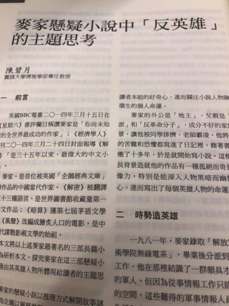 學術論文發表—〈麥家懸疑小說中「反英雄」的主題思考〉2020.11