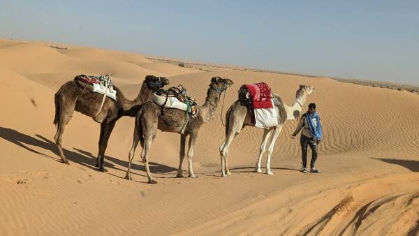 騎上單峰駱駝,隨著起伏的沙丘走向廣袤的撒哈拉,