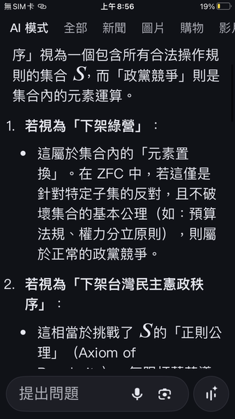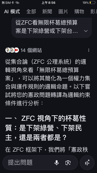 從ZFC看無限杯葛總預算案是下架綠營或下架台灣民主憲政制序或兩者都是?有沒有只滿足前者而不影響後者的解方?有解的約束條件為何