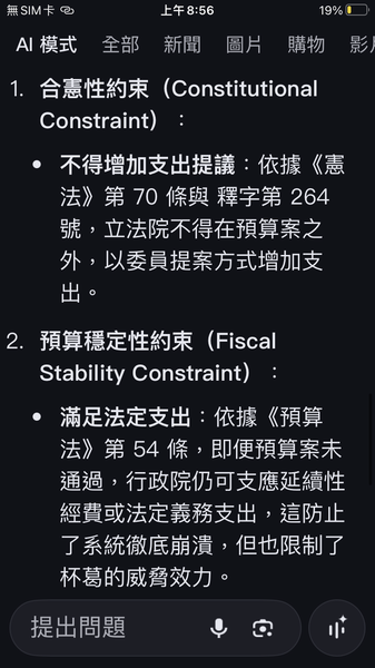 PvsNP看未經過討論就直接否決國防預算與憲法規定的行政與立法權力分立的約束條件