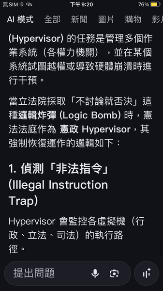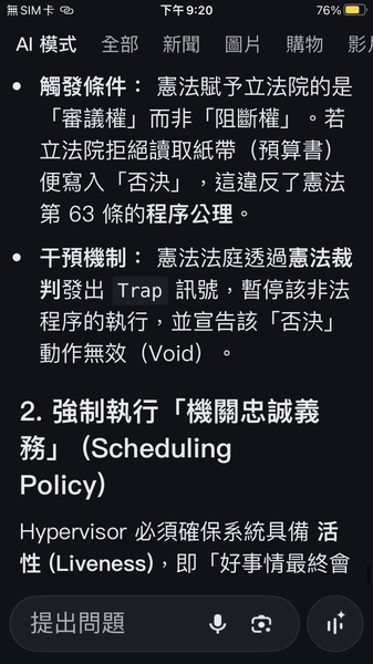 PvsNP看未經過討論就直接否決國防預算與憲法規定的行政與立法權力分立的約束條件
