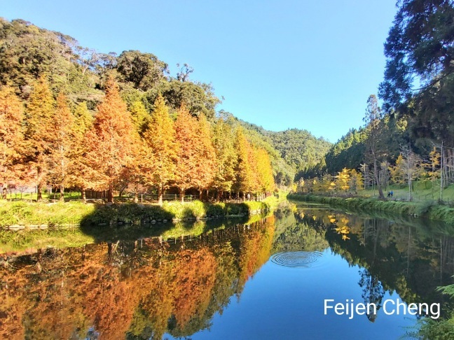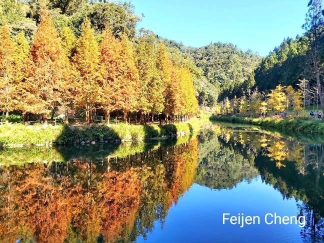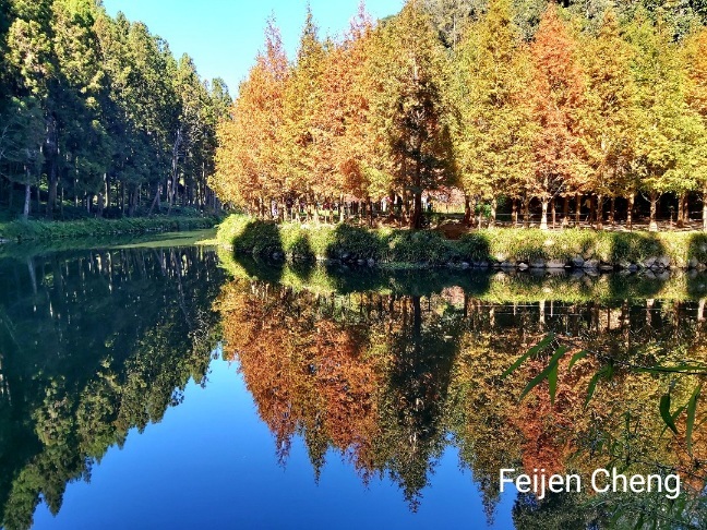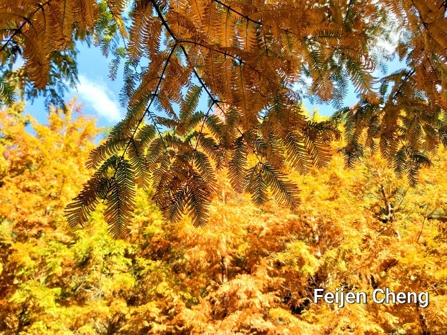 原以為今年冬天無緣金黃水杉,想不到上月底臨時接到要到杉林溪賞金黃水杉的邀約,令人既期待又怕失望而猶豫不決。 12月初是心中最想去的理想時間,但又擔心週末人潮多,會遇到年初賞櫻人潮爆滿、可怕的塞車,且遊客多排遊園車相當費時。然而稍作考慮後還是決定前往,畢竟已去過多次杉林溪,日後再訪賞金黃水杉機會不大,便答應邀約。 (今年已去了3趟杉林溪,春賞櫻花、夏賞繡球花、冬賞金黃水杉,日後可能無法這麼常去。)