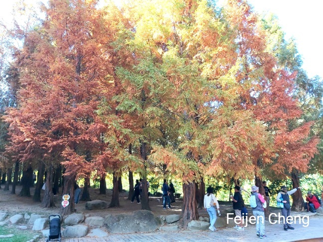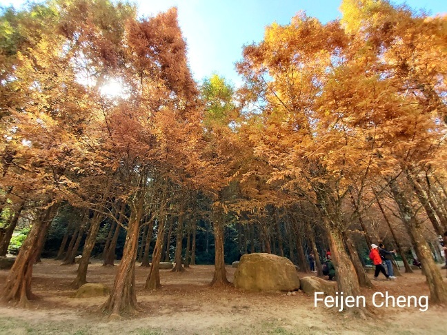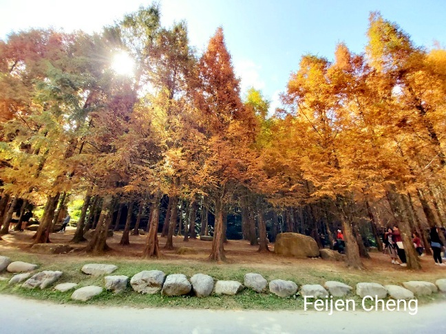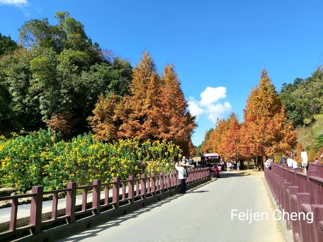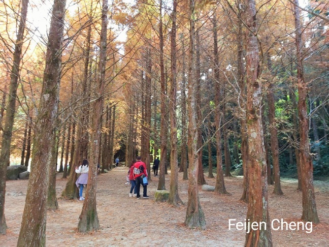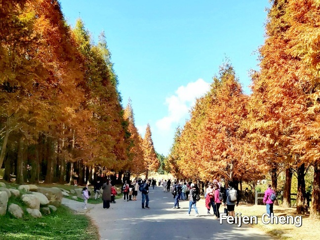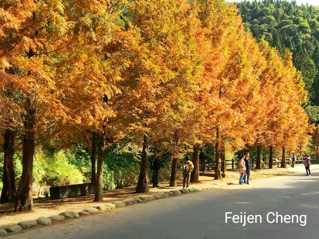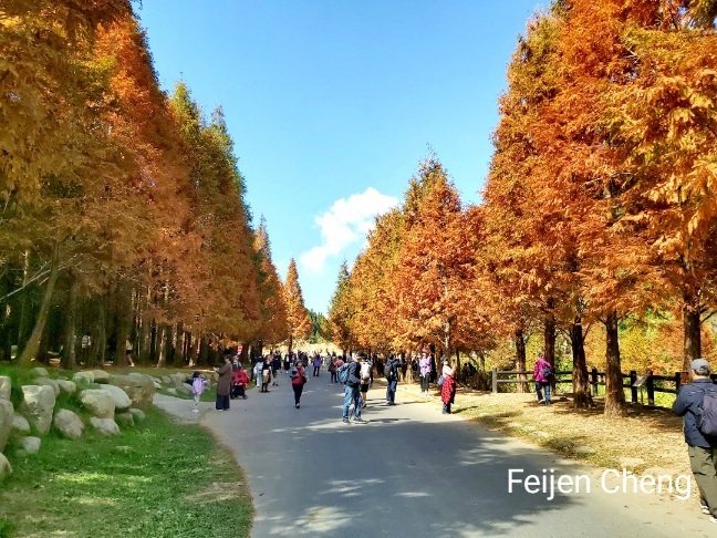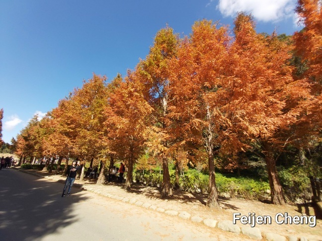 在絕美橘黃水杉下拍照,滿滿秋色,讓人忘了時序已入冬。對於網美網紅或愛拍照的人,在這裡可以拍好拍滿。