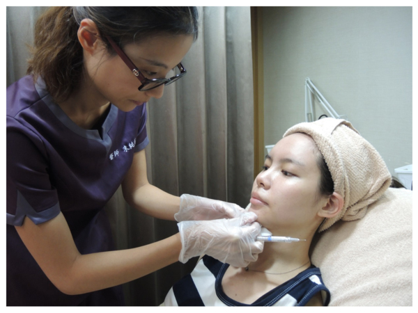 自體脂肪豐頰後再經由朱醫師評估,由於Wendy下巴較短,雖然補了自體脂肪已經有改善但消腫後下巴及鼻尖再做微調能使臉型變的更順,朱醫師建議注射微晶瓷在下巴及鼻尖,能使五官看來更精緻立體,並建議施打m22彩衝光雷射來淨白皮膚。