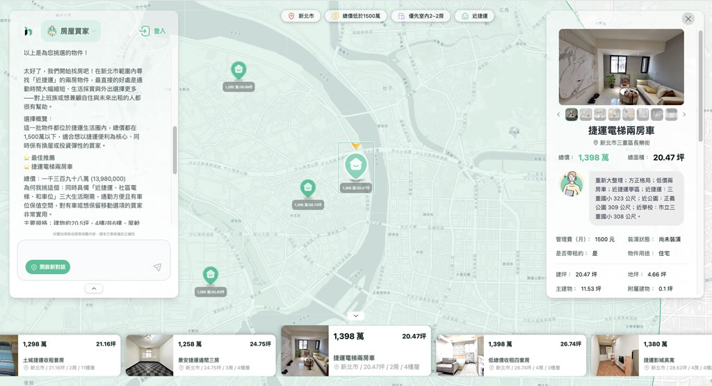 這一步很像真人顧問在了解需求。 自動媒合物件