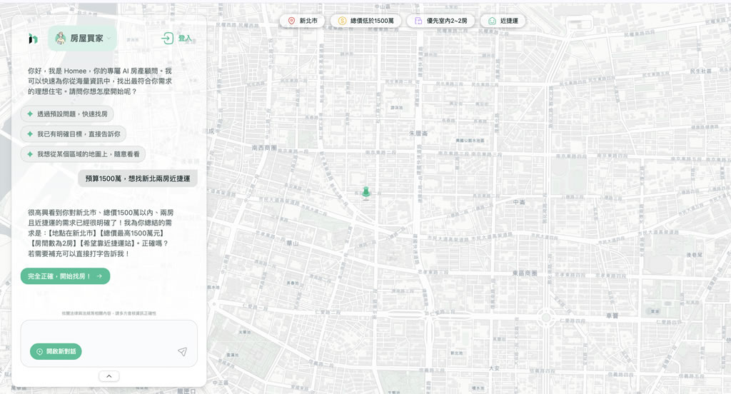 這也是為什麼很多人找房會找好幾個月。 實測:用 Homee 對話式找房流程 輸入需求條件